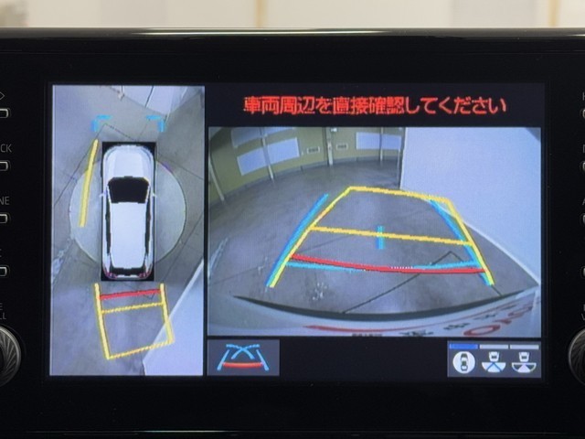 パノラミックビューモニターシステムが付いているので車の上から見た映像が確認できますよ。 一目で車両周辺の情報を確認できますが、直接安全をご確認下さい。