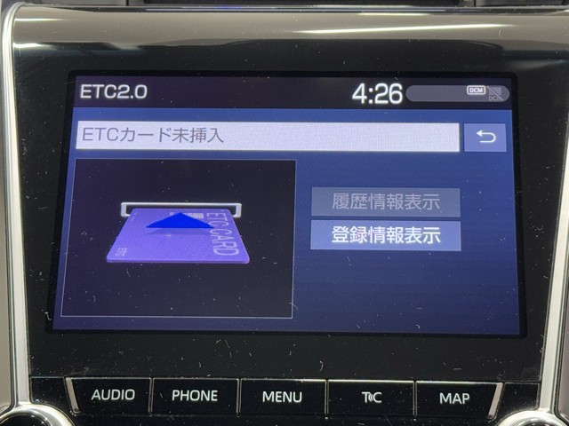 ナビ画面に連動したETCを装備しています。 過去に利用した利用料金も一目で分かって、とっても便利です。 ETCの抜き忘れ、挿し忘れも警告してくれるので安心ですね。