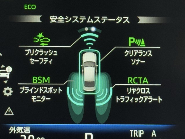 車線変更時などに、ドアミラーでは確認しにくい後側方エリア(ブラインドスポット)に存在する車両をレーダーで検知。警告サインをドアミラー等に表示することで、運転者に注意喚起する機能。