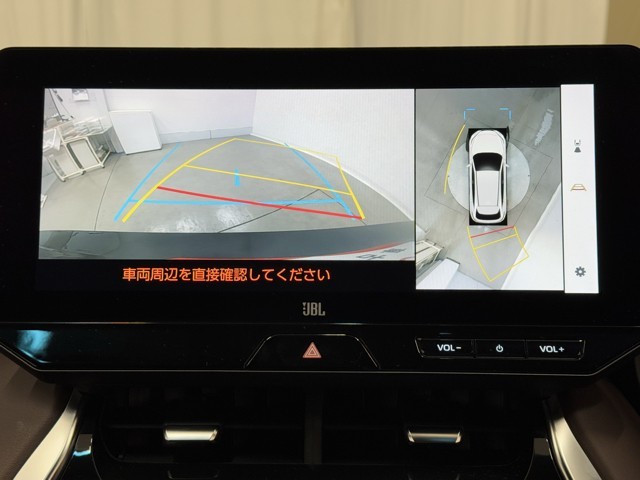 パノラミックビューモニターシステムが付いているので車の上から見た映像が確認できますよ。 一目で車両周辺の情報を確認できますが、直接安全をご確認下さい。