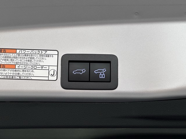 電動式バックドアです。 荷物を持ったままでもボタン一つで自動的に開け閉めできるので便利ですよ。 挟み込み防止機能も付いていますのでお子様の手や荷物を挟み込むのを防いでくれますよ。