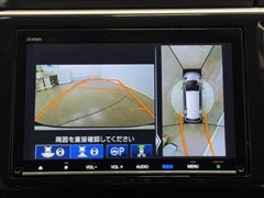 パノラミックビューモニターシステムが付いているので車の上から見た映像が確認できますよ。 一目で車両周辺の情報を確認できますが、直接安全をご確認下さい。