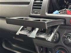 便利なカップホルダーを装備しています。 缶ジュースを開けて運転していると振動で倒れないかヒヤヒヤ、意外と置き場に困るもの。 意外に重要な装備ですね。