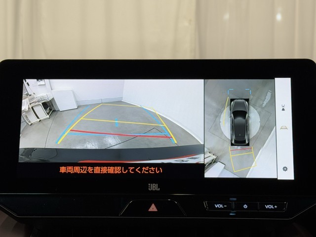 パノラミックビューモニターシステムが付いているので車の上から見た映像が確認できますよ。 一目で車両周辺の情報を確認できますが、直接安全をご確認下さい。