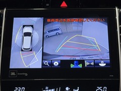 パノラミックビューモニターシステムが付いているので車の上から見た映像が確認できますよ。 一目で車両周辺の情報を確認できますが、直接安全をご確認下さい。