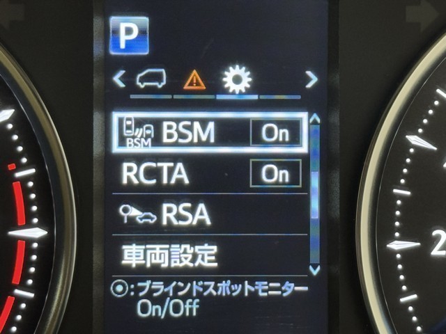 車線変更時などに、ドアミラーでは確認しにくい後側方エリア(ブラインドスポット)に存在する車両をレーダーで検知。警告サインをドアミラー等に表示することで、運転者に注意喚起する機能。