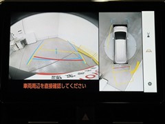 パノラミックビューモニターシステムが付いているので車の上から見た映像が確認できますよ。 一目で車両周辺の情報を確認できますが、直接安全をご確認下さい。