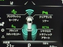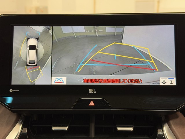 パノラミックビューモニターシステムが付いているので車の上から見た映像が確認できますよ。 一目で車両周辺の情報を確認できますが、直接安全をご確認下さい。