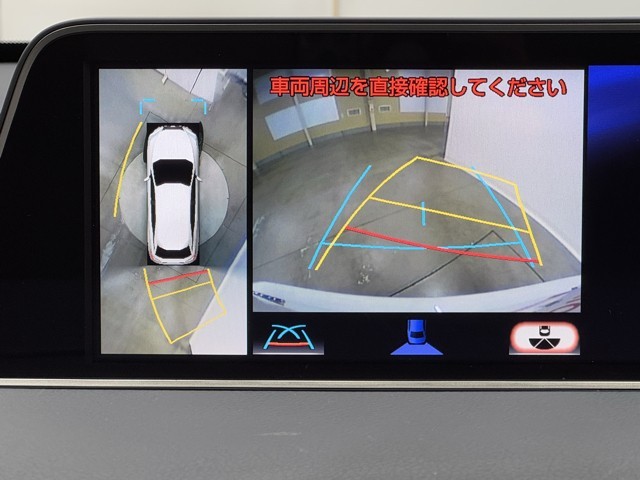 パノラミックビューモニターシステムが付いているので車の上から見た映像が確認できますよ。 一目で車両周辺の情報を確認できますが、直接安全をご確認下さい。