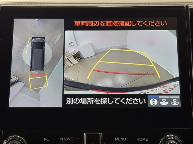 パノラミックビューモニターシステムが付いているので車の上から見た映像が確認できますよ。 一目で車両周辺の情報を確認できますが、直接安全をご確認下さい。