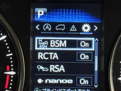 車線変更時などに、ドアミラーでは確認しにくい後側方エリア(ブラインドスポット)に存在する車両をレーダーで検知。警告サインをドアミラー等に表示することで、運転者に注意喚起する機能。
