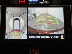 パノラミックビューモニターシステムが付いているので車の上から見た映像が確認できますよ。 一目で車両周辺の情報を確認できますが、直接安全をご確認下さい。