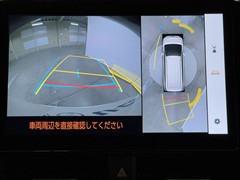 パノラミックビューモニターシステムが付いているので車の上から見た映像が確認できますよ。 一目で車両周辺の情報を確認できますが、直接安全をご確認下さい。