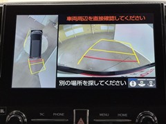 パノラミックビューモニターシステムが付いているので車の上から見た映像が確認できますよ。 一目で車両周辺の情報を確認できますが、直接安全をご確認下さい。