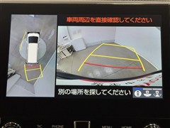 パノラミックビューモニターシステムが付いているので車の上から見た映像が確認できますよ。 一目で車両周辺の情報を確認できますが、直接安全をご確認下さい。