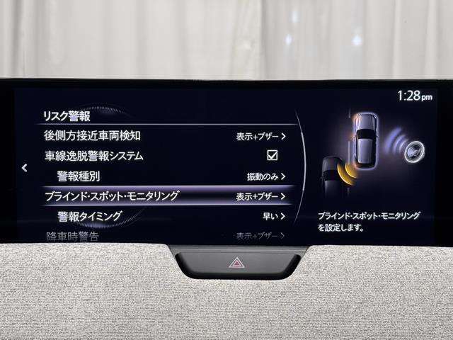 車線変更時などに、ドアミラーでは確認しにくい後側方エリア(ブラインドスポット)に存在する車両をレーダーで検知。警告サインをドアミラー等に表示することで、運転者に注意喚起する機能。