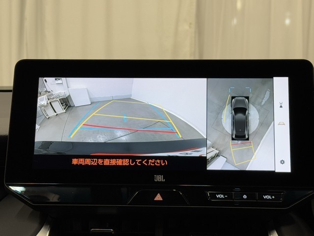 パノラミックビューモニターシステムが付いているので車の上から見た映像が確認できますよ。 一目で車両周辺の情報を確認できますが、直接安全をご確認下さい。