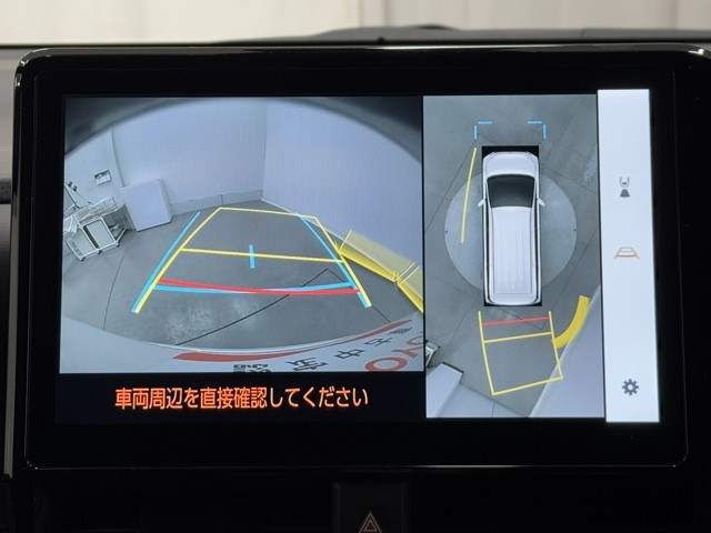 パノラミックビューモニターシステムが付いているので車の上から見た映像が確認できますよ。 一目で車両周辺の情報を確認できますが、直接安全をご確認下さい。