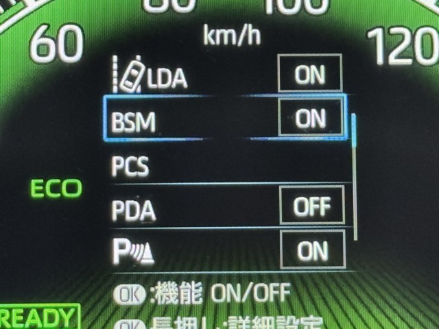 車線変更時などに、ドアミラーでは確認しにくい後側方エリア(ブラインドスポット)に存在する車両をレーダーで検知。警告サインをドアミラー等に表示することで、運転者に注意喚起する機能。