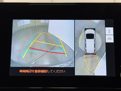 パノラミックビューモニターシステムが付いているので車の上から見た映像が確認できますよ。 一目で車両周辺の情報を確認できますが、直接安全をご確認下さい。