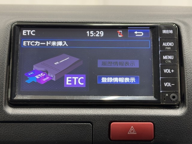 ナビ画面に連動したETCを装備しています。 過去に利用した利用料金も一目で分かって、とっても便利です。 ETCの抜き忘れ、挿し忘れも警告してくれるので安心ですね。