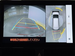 パノラミックビューモニターシステムが付いているので車の上から見た映像が確認できますよ。 一目で車両周辺の情報を確認できますが、直接安全をご確認下さい。