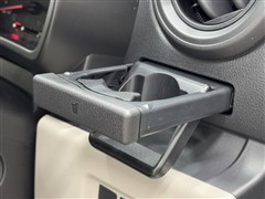 便利なカップホルダーを装備しています。 缶ジュースを開けて運転していると振動で倒れないかヒヤヒヤ、意外と置き場に困るもの。 意外に重要な装備ですね。