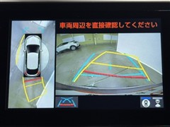 パノラミックビューモニターシステムが付いているので車の上から見た映像が確認できますよ。 一目で車両周辺の情報を確認できますが、直接安全をご確認下さい。