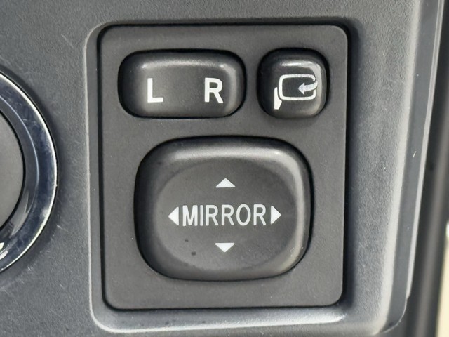 電動格納ミラーの操作スイッチですね。 駐車時にミラーを動かそうと外に出る必要も無く、悪天候の時でも運転席に居ながらミラーの操作できますよ。 一度使うと手放せない装備ですよね。