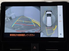 パノラミックビューモニターシステムが付いているので車の上から見た映像が確認できますよ。 一目で車両周辺の情報を確認できますが、直接安全をご確認下さい。