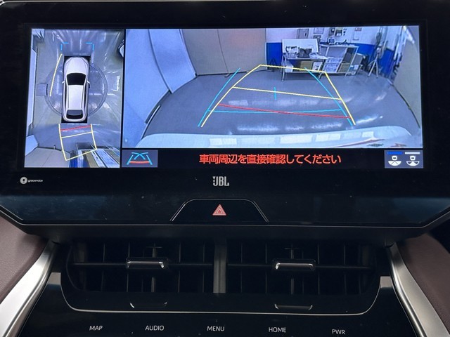 パノラミックビューモニターシステムが付いているので車の上から見た映像が確認できますよ。 一目で車両周辺の情報を確認できますが、直接安全をご確認下さい。