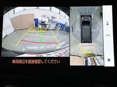 パノラミックビューモニターシステムが付いているので車の上から見た映像が確認できますよ。 一目で車両周辺の情報を確認できますが、直接安全をご確認下さい。