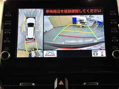 パノラミックビューモニターシステムが付いているので車の上から見た映像が確認できますよ。 一目で車両周辺の情報を確認できますが、直接安全をご確認下さい。