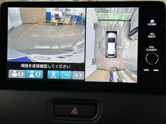 パノラミックビューモニターシステムが付いているので車の上から見た映像が確認できますよ。 一目で車両周辺の情報を確認できますが、直接安全をご確認下さい。
