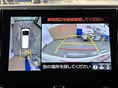 パノラミックビューモニターシステムが付いているので車の上から見た映像が確認できますよ。 一目で車両周辺の情報を確認できますが、直接安全をご確認下さい。