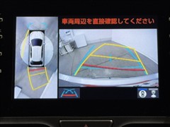 パノラミックビューモニターシステムが付いているので車の上から見た映像が確認できますよ。 一目で車両周辺の情報を確認できますが、直接安全をご確認下さい。