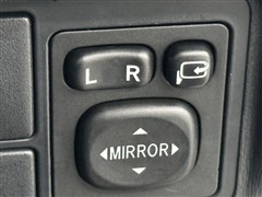 電動格納ミラーの操作スイッチですね。 駐車時にミラーを動かそうと外に出る必要も無く、悪天候の時でも運転席に居ながらミラーの操作できますよ。 一度使うと手放せない装備ですよね。