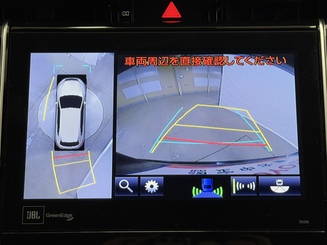 パノラミックビューモニターシステムが付いているので車の上から見た映像が確認できますよ。 一目で車両周辺の情報を確認できますが、直接安全をご確認下さい。