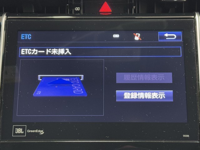 ナビ画面に連動したETCを装備しています。 過去に利用した利用料金も一目で分かって、とっても便利です。 ETCの抜き忘れ、挿し忘れも警告してくれるので安心ですね。