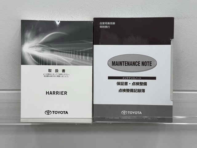 メンテナンスノート、取扱説明書です。 その車の整備記録が事細やかに記録されています。 車が生まれてから今までどのような道を歩んできたのか判るとても重要な物ですよ。