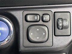 電動格納ミラーの操作スイッチですね。 駐車時にミラーを動かそうと外に出る必要も無く、悪天候の時でも運転席に居ながらミラーの操作できますよ。 一度使うと手放せない装備ですよね。