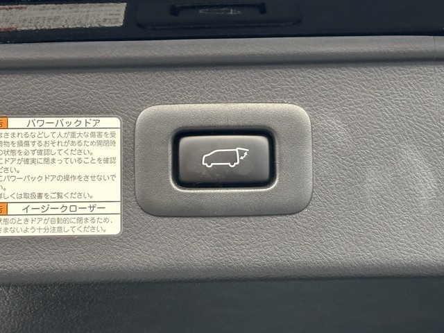 電動式バックドアです。 荷物を持ったままでもボタン一つで自動的に開け閉めできるので便利ですよ。 挟み込み防止機能も付いていますのでお子様の手や荷物を挟み込むのを防いでくれますよ。