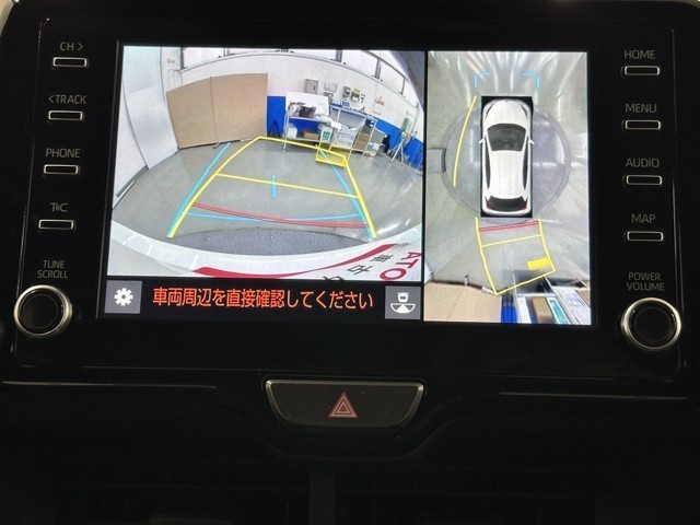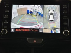 パノラミックビューモニターシステムが付いているので車の上から見た映像が確認できますよ。 一目で車両周辺の情報を確認できますが、直接安全をご確認下さい。