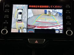パノラミックビューモニターシステムが付いているので車の上から見た映像が確認できますよ。 一目で車両周辺の情報を確認できますが、直接安全をご確認下さい。