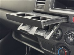 便利なカップホルダーを装備しています。 缶ジュースを開けて運転していると振動で倒れないかヒヤヒヤ、意外と置き場に困るもの。 意外に重要な装備ですね。