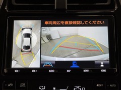 パノラミックビューモニターシステムが付いているので車の上から見た映像が確認できますよ。 一目で車両周辺の情報を確認できますが、直接安全をご確認下さい。