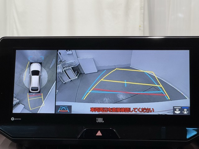 パノラミックビューモニターシステムが付いているので車の上から見た映像が確認できますよ。 一目で車両周辺の情報を確認できますが、直接安全をご確認下さい。
