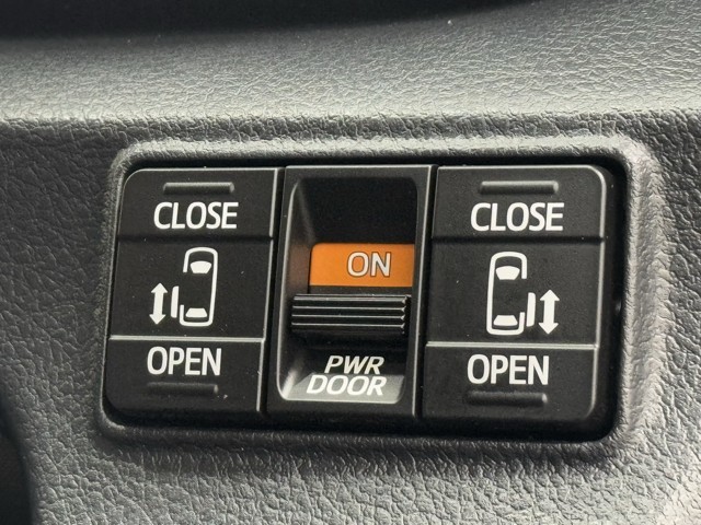 パワースライドドア装備で乗降りラクラク! 開閉もスイッチ一つでワンタッチですよ。 お子様やお年寄りの方も安心してお乗りできます。 坂道で開閉が重くなってしまう時に便利ですよ。