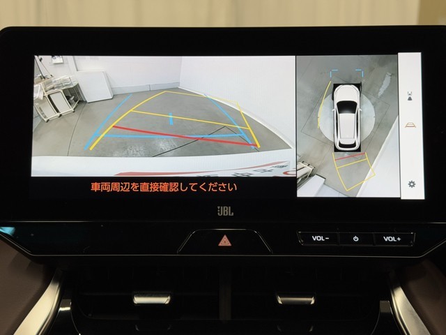 パノラミックビューモニターシステムが付いているので車の上から見た映像が確認できますよ。 一目で車両周辺の情報を確認できますが、直接安全をご確認下さい。