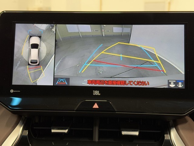 パノラミックビューモニターシステムが付いているので車の上から見た映像が確認できますよ。 一目で車両周辺の情報を確認できますが、直接安全をご確認下さい。